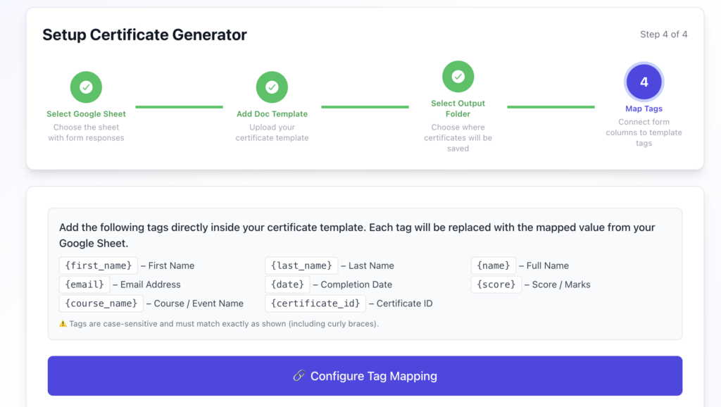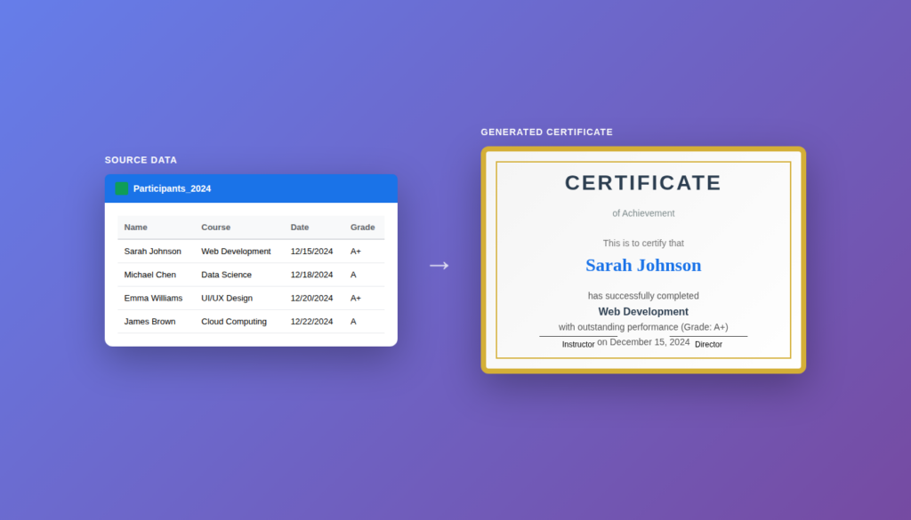 Generate certificates from your Google Sheets instantly.
